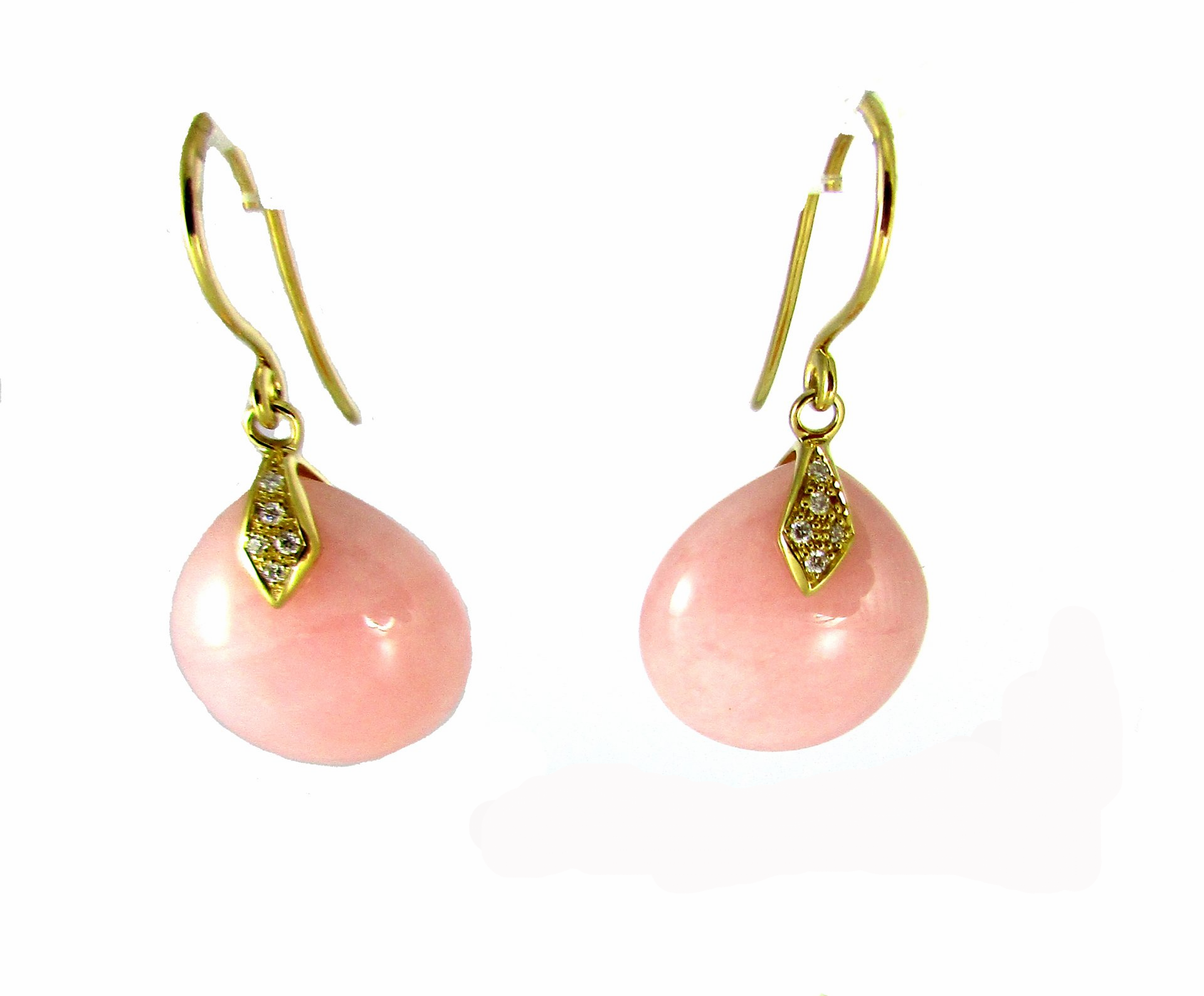 Une paire de boucles d'oreilles or jaune 750/1000 avec 2 opales roses et diamants.