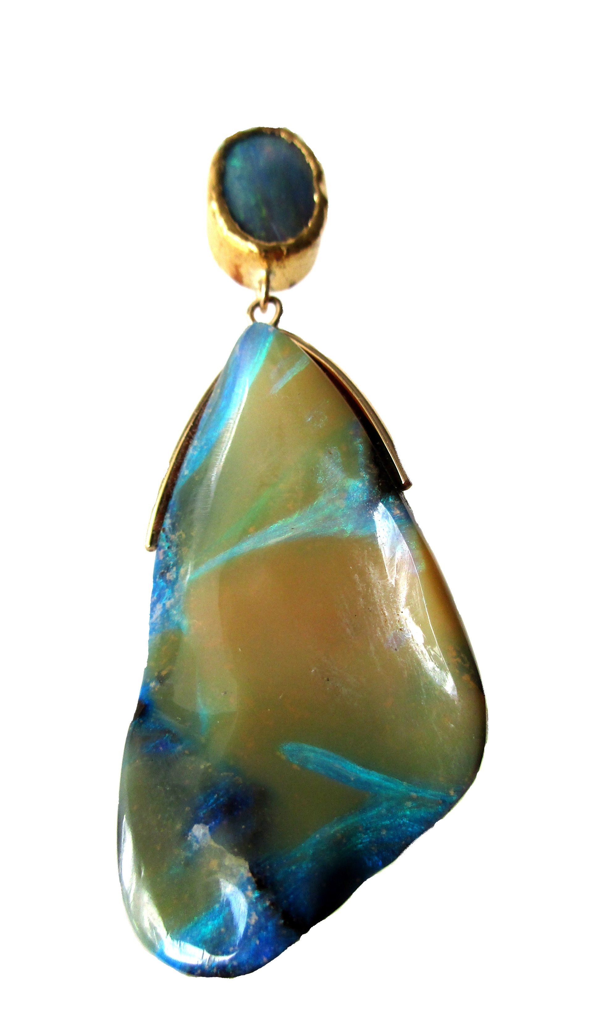 Pendentif or jaune 750/1000 avec une petite opale noir cabochon et une grande opale d'Australie